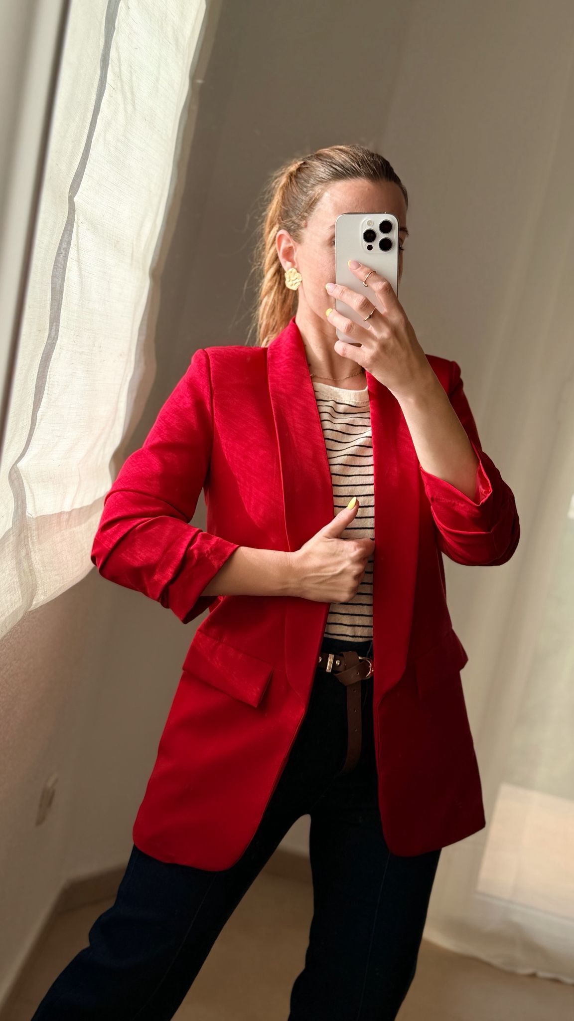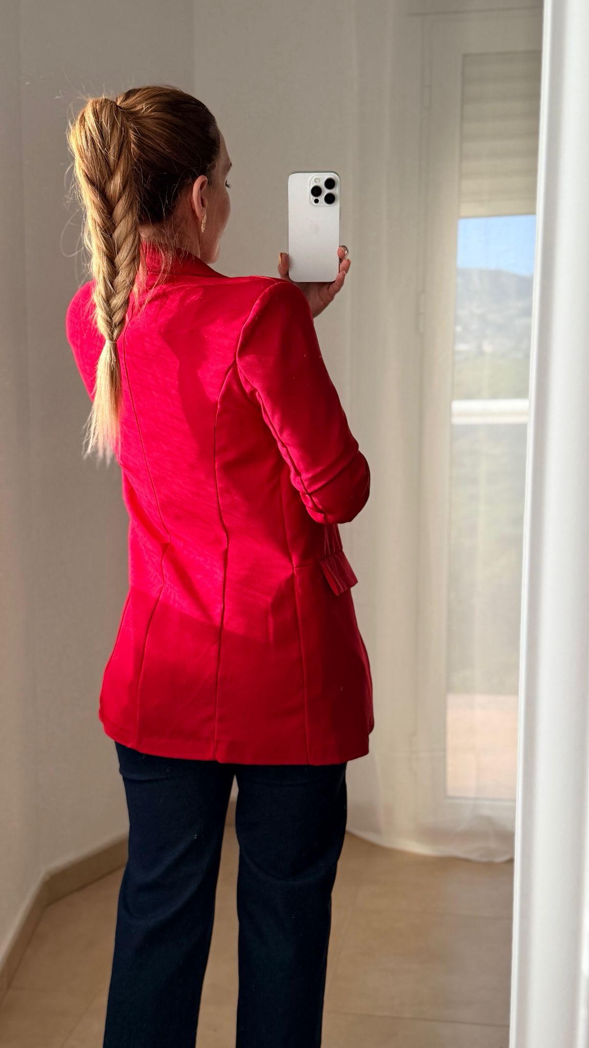 Eleva tu look con nuestra Blazer Roja Manga Fruncida. Una prenda estructurada con un diseño sofisticado que incluye forro interior para mayor comodidad y calidad. Su talla S/M se adapta perfectamente a la silueta, mientras que el detalle de la manga fruncida aporta un toque moderno y desenfadado. Ideal para cualquier ocasión.
