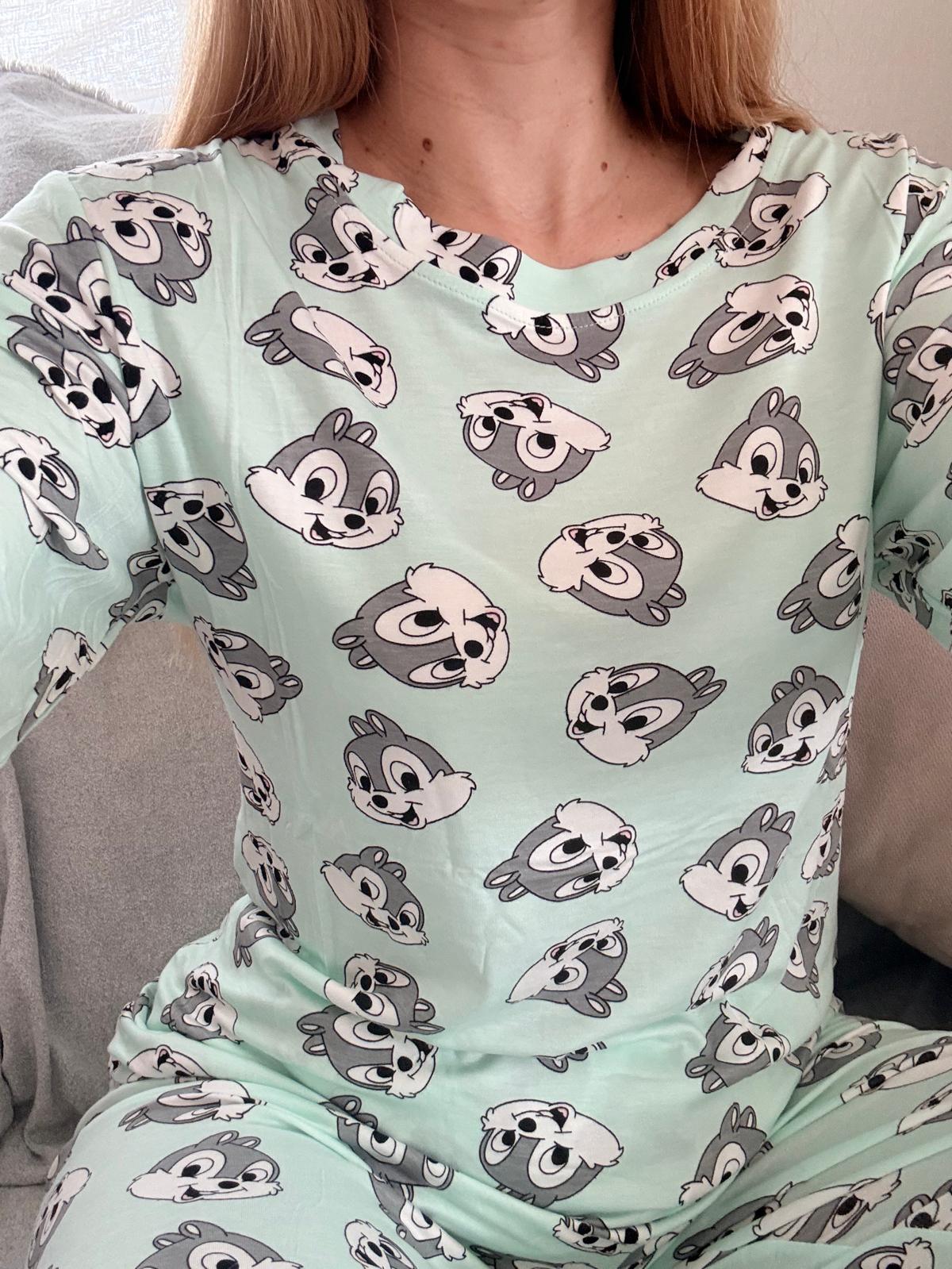 Disfruta del máximo confort con nuestro pijama de algodón 100%, diseñado para tus momentos de relax en casa. Un conjunto de dos piezas con un divertido estampado de Chip y Chop, de tejido suave, transpirable y muy agradable al tacto. Ideal para dormir o para esos días de «sofá y manta».